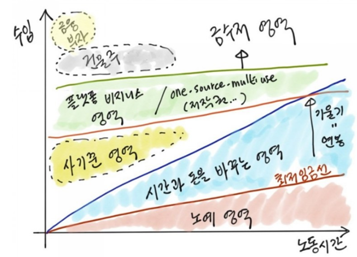 - 자본소득: 시간X, 초기투자금(seed)요약하자면 고물가 저금리 시대에는 노동소득만으로는 돈을 벌수없다는 얘기이다.
